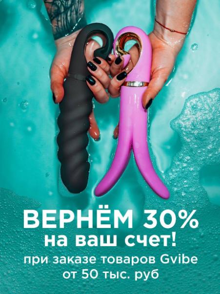 При заказе Gvibe от 50 000 ₽ — вернем 30% на ваш бонусный счет, для покупки других брендов Эросклада (Nuei, Viamax, Москва, Lelo и другие).