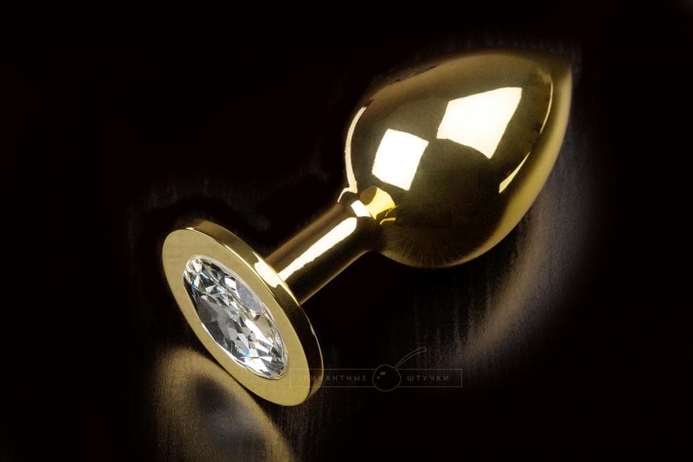 Пикантные штучки - Большая золотистая анальная пробка с ярким кристаллом, 9 см (бриллиант)
