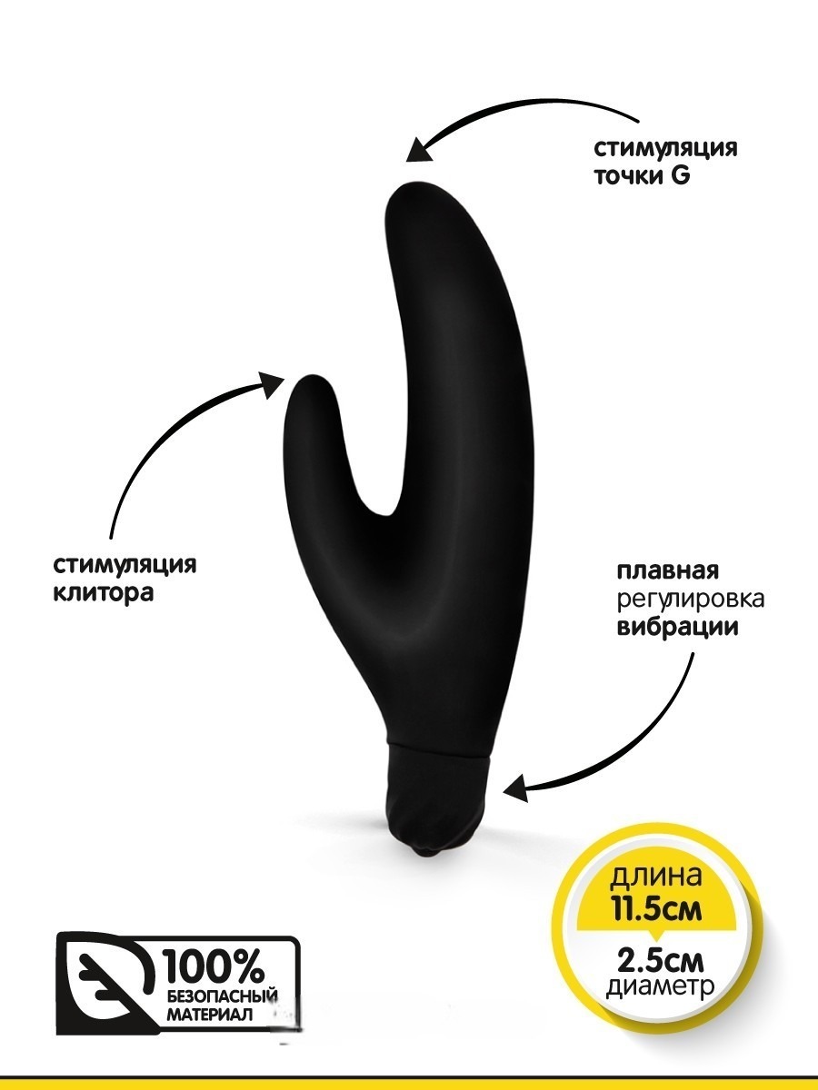 Браззерс - Вибратор-кролик, 11.5х2.5 см (чёрный)