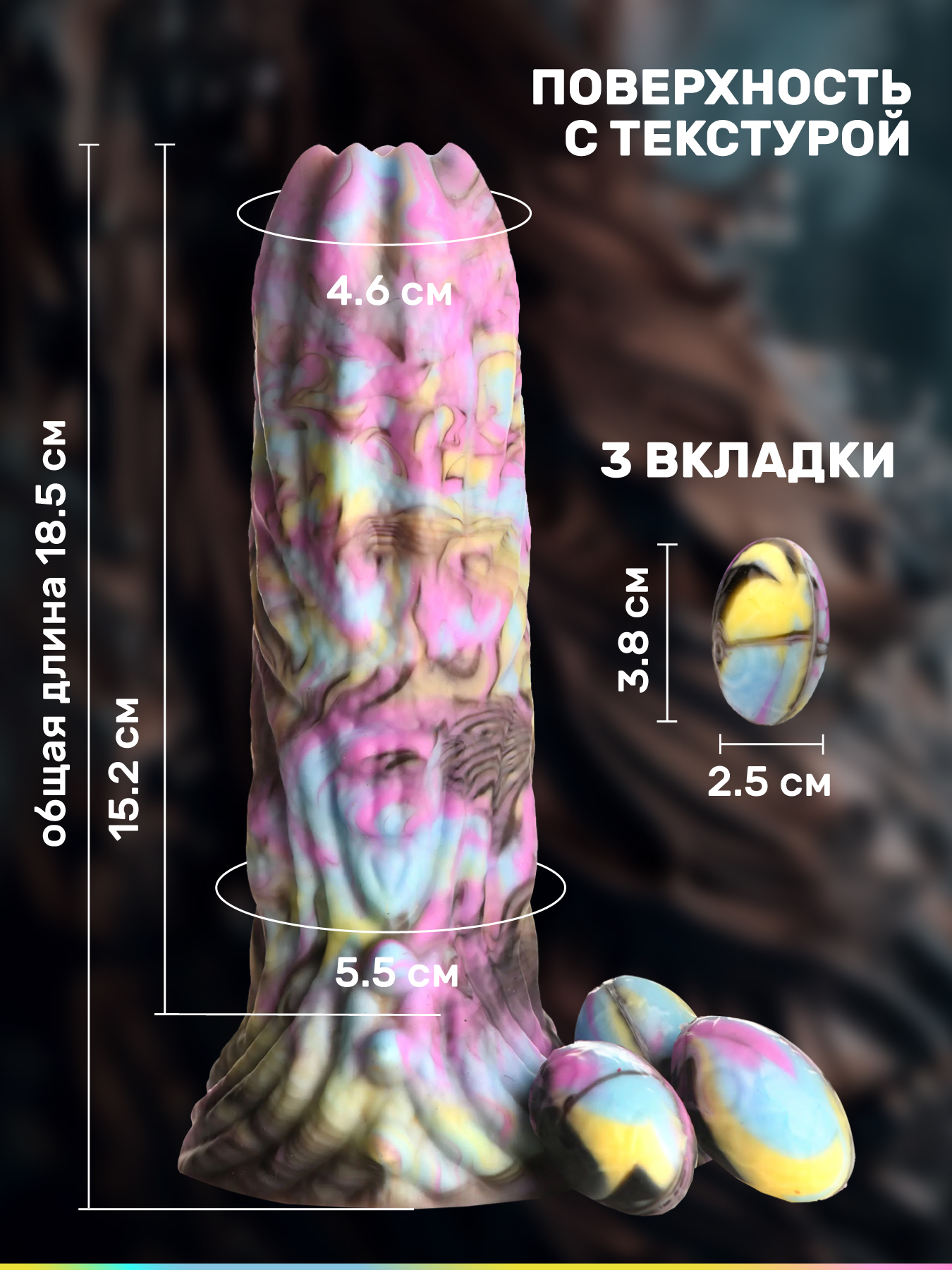 Фаллоимитатор имеет уникальную текстуру завитков, гребней, канавок и выступов, которые отправят вас в мир наслаждения! Полый центр достаточно широк, чтобы 3 силиконовые вкладки могли проскользнуть внутрь! Широкое фланцевое основание делает его совместимым со страпоном.