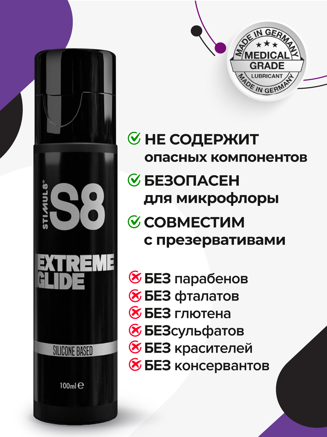 S8 Extreme Glide — вершина лубрикантов на силиконовой основе, разработанных для улучшения ваших интимных ощущений.
