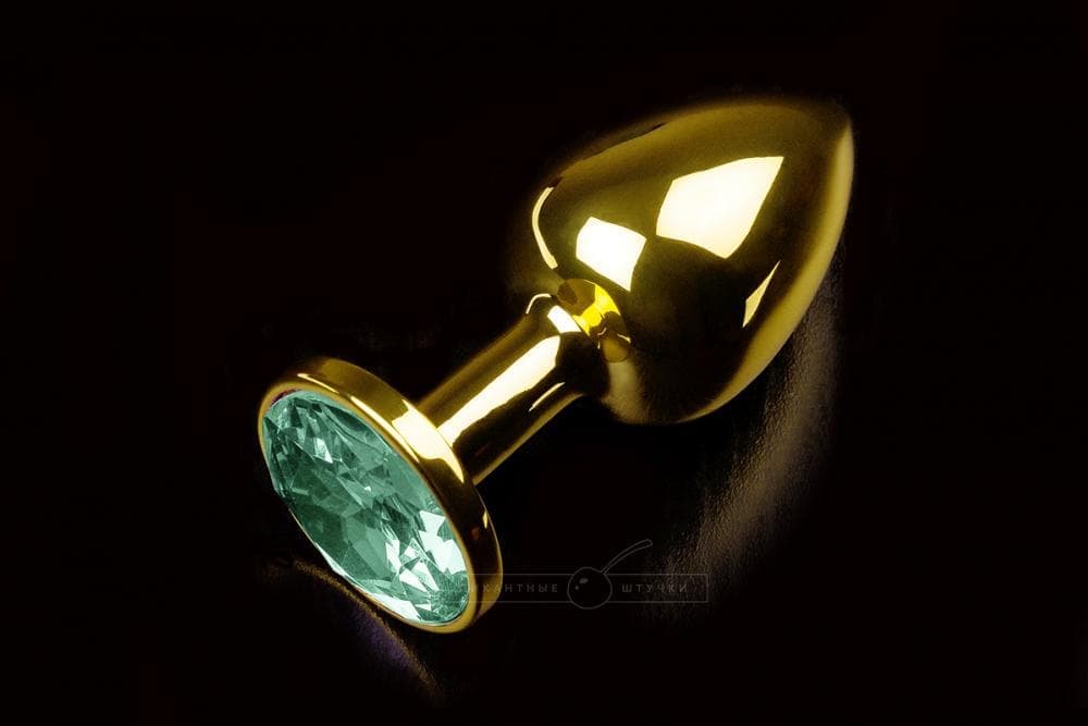 Пикантные штучки - Маленькая золотистая анальная пробка с кристаллом - 7х2.5 см (изумрудный)