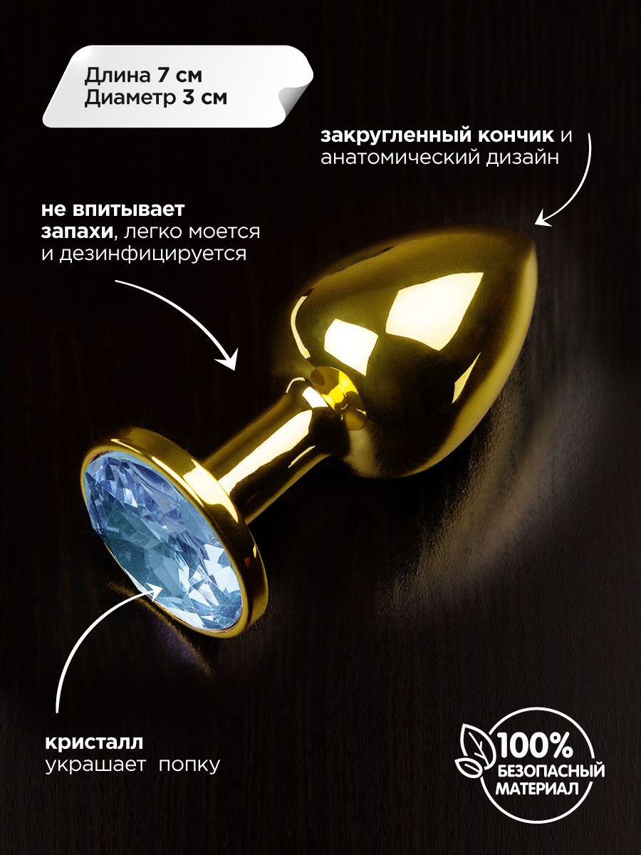 Сделана из медицинской стали с золотистым покрытием. Металл - один из самых гигиеничных материалов, такая пробочка не впитывает запахи, легко моется и дезинфицируется. С ней можно использовать любые анальные лубриканты.