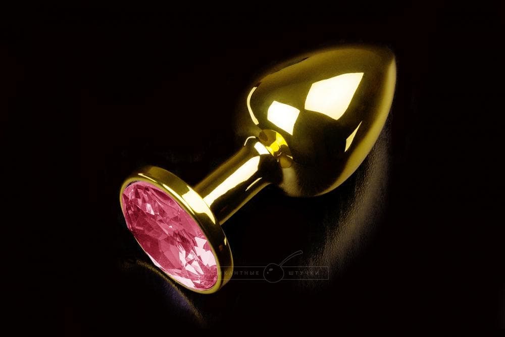 Пикантные штучки - Маленькая золотистая анальная пробка с кристаллом - 7х2.5 см (рубиновый)