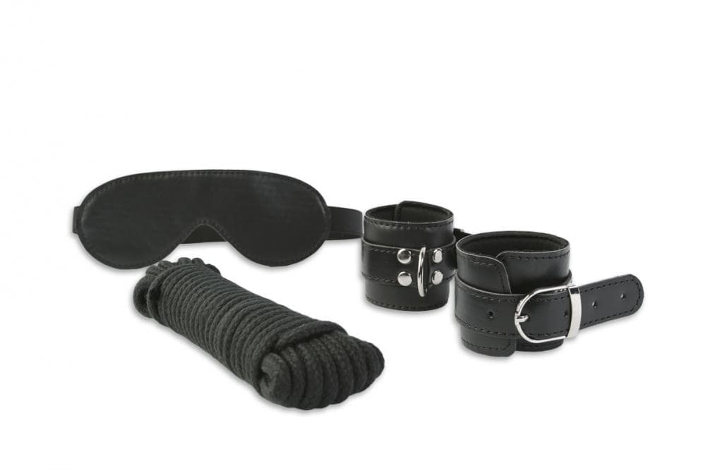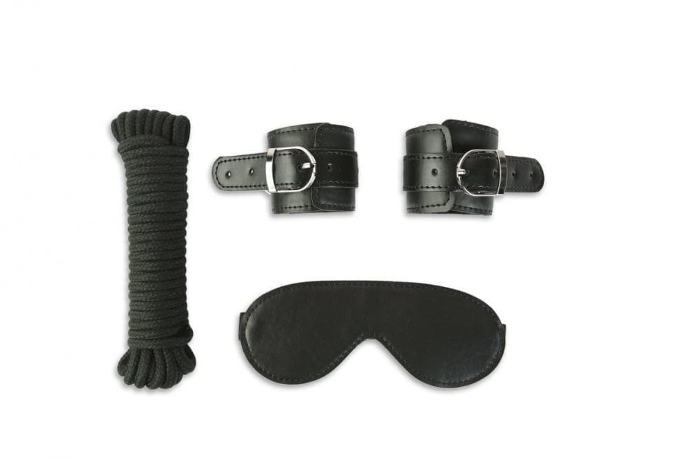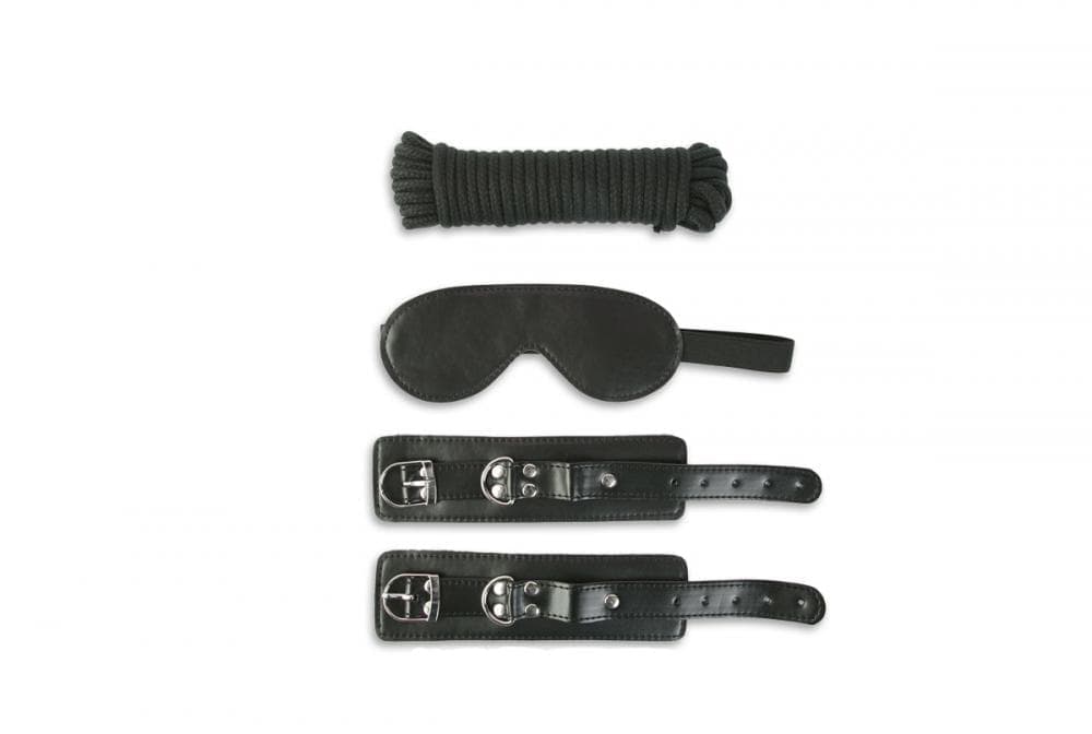 В него входят удобные манжеты, которые могут быть фиксаторами для рук и ног (на максимальный обхват 25 см) ; маска на глаза и специальная веревка для бондажа. Она не давит, не натирает, стильно смотрится, и очень удобна для ролевых игр. Её длина 9м.