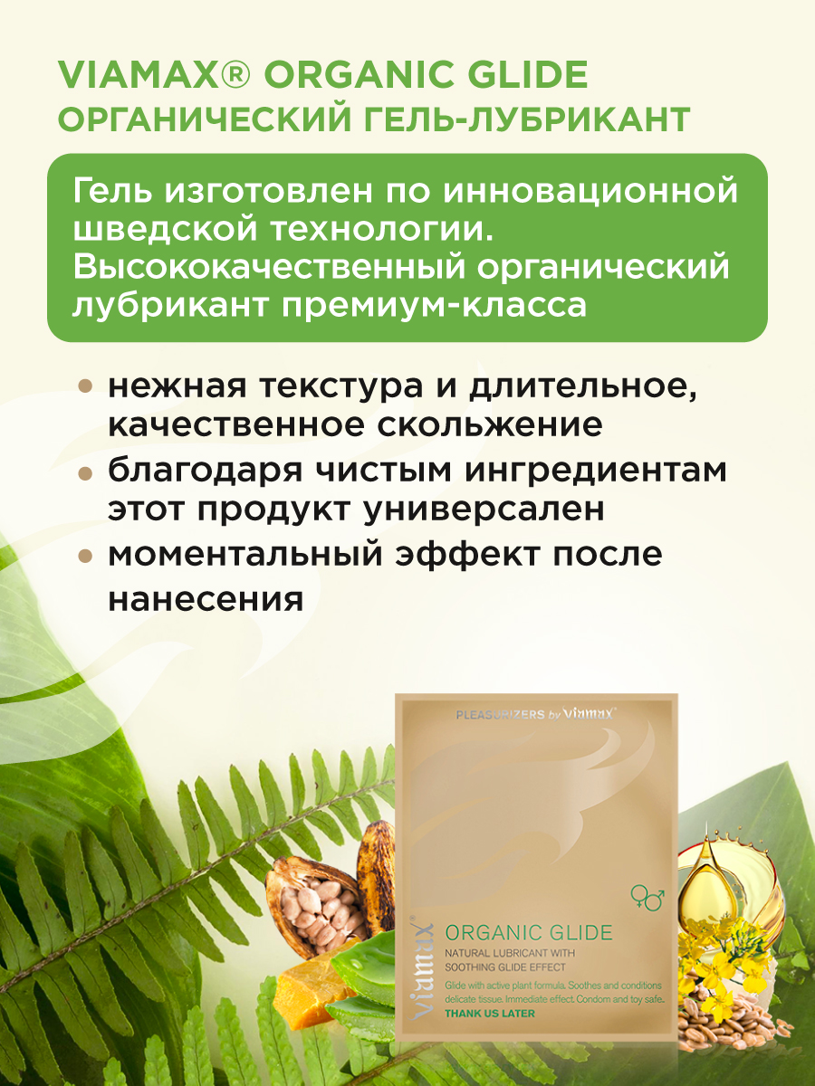 Натуральный лубрикант для разового применения Organic glide, 2 мл. - Viamax