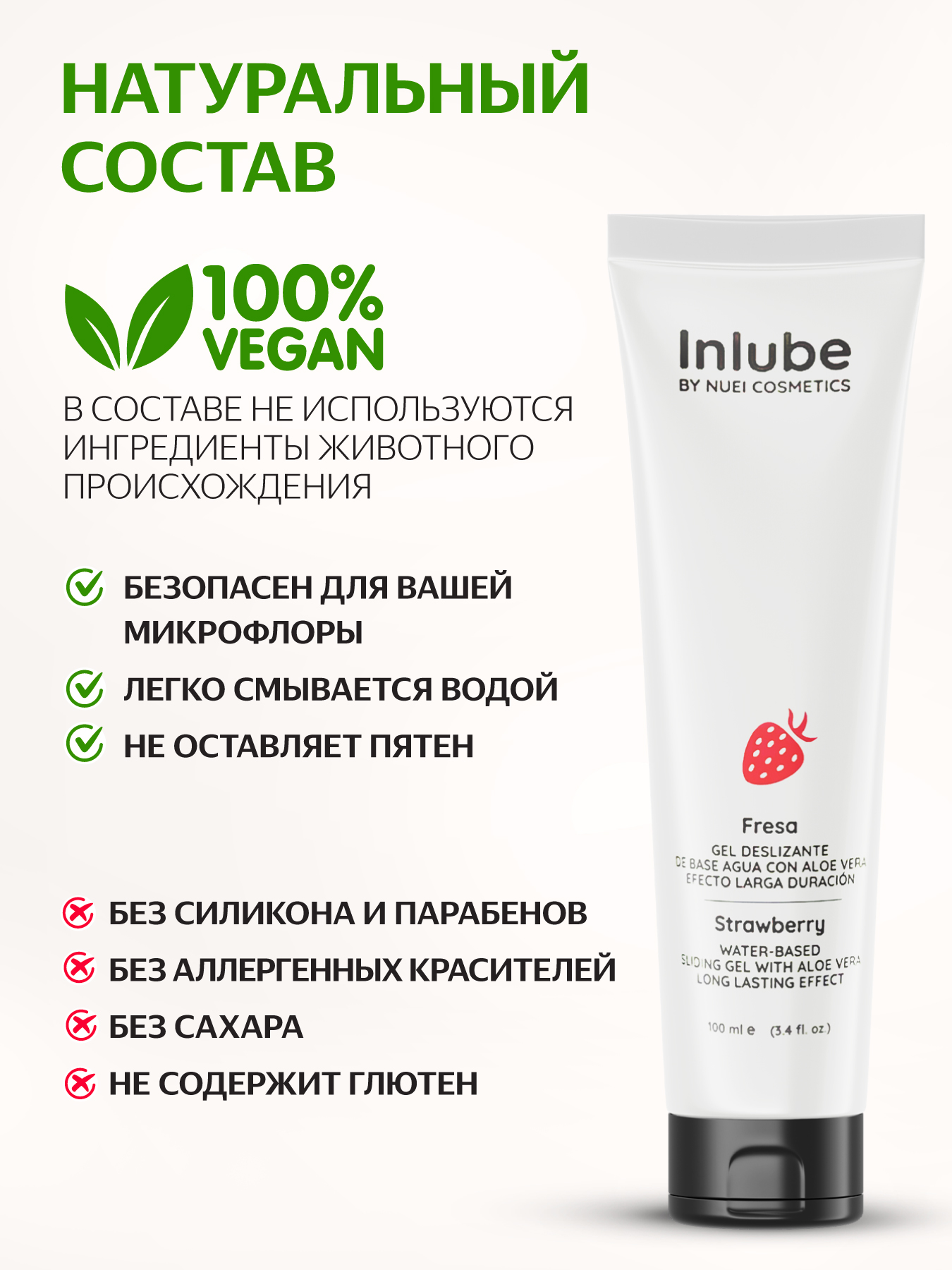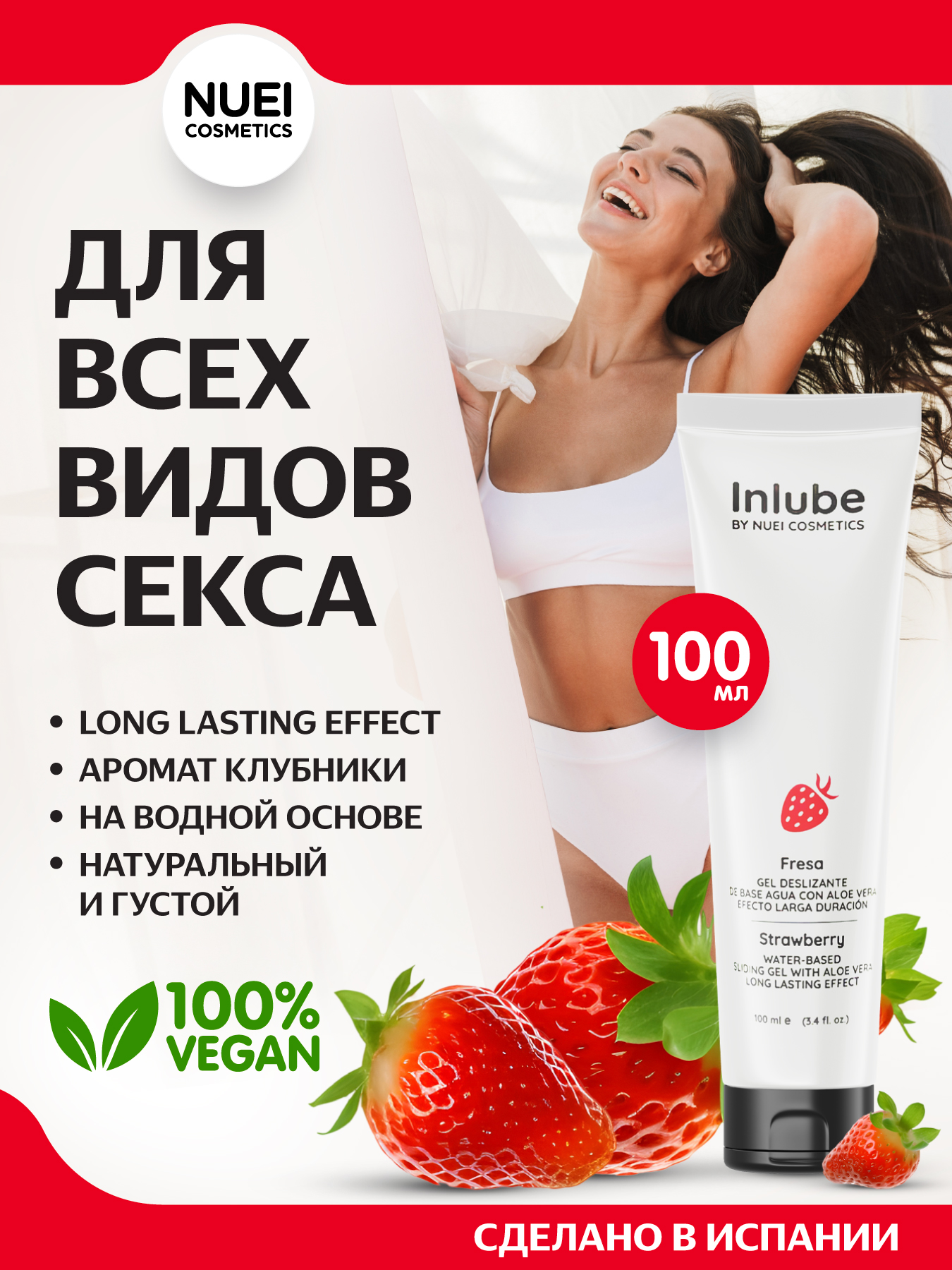 Nuei Inlube - водный лубрикант с алоэ вера и ароматом клубники, 100 мл
