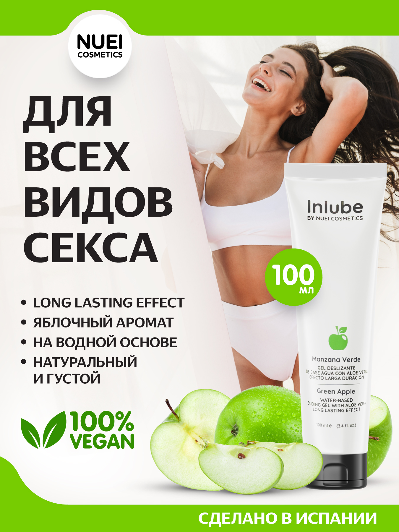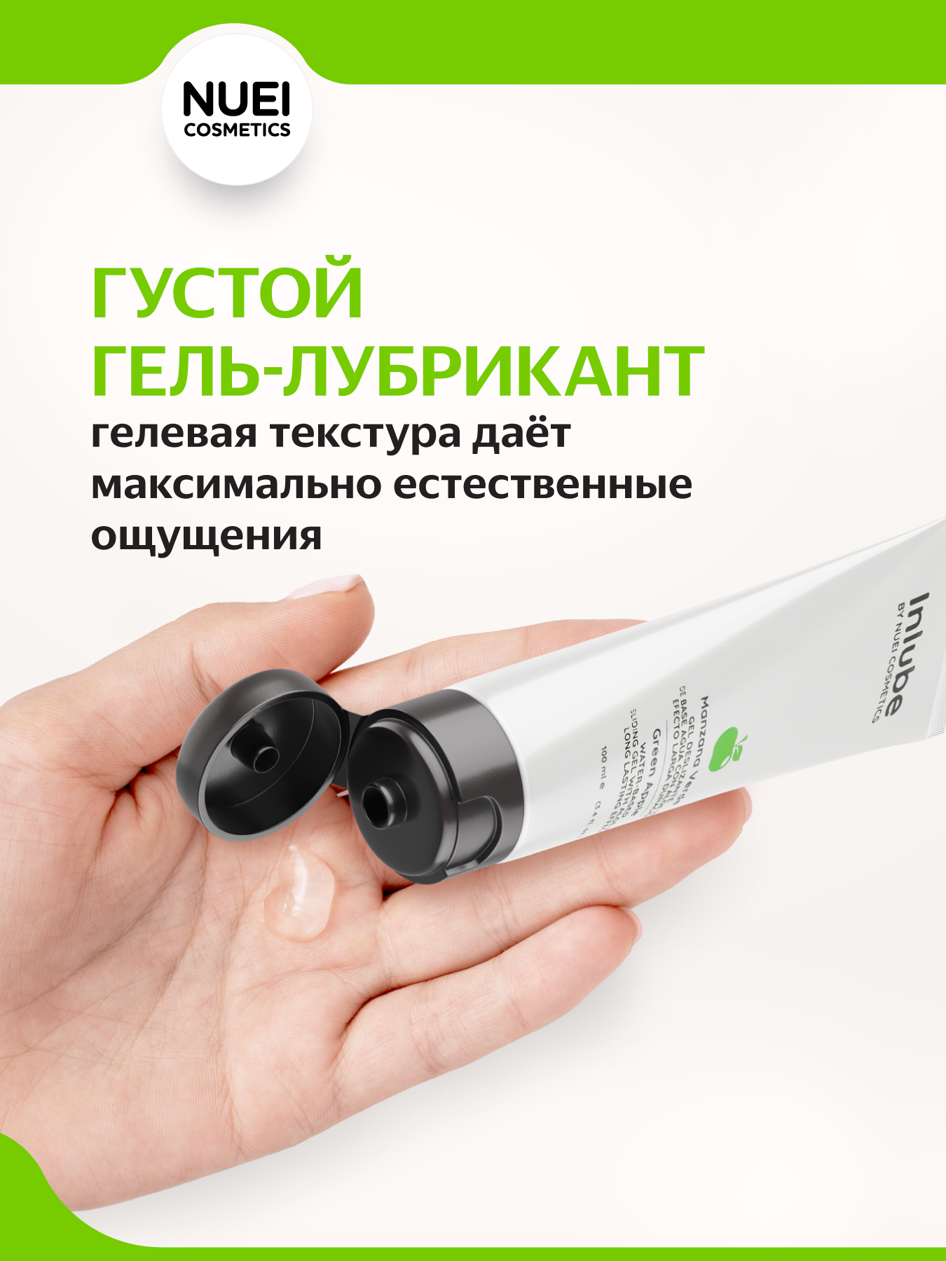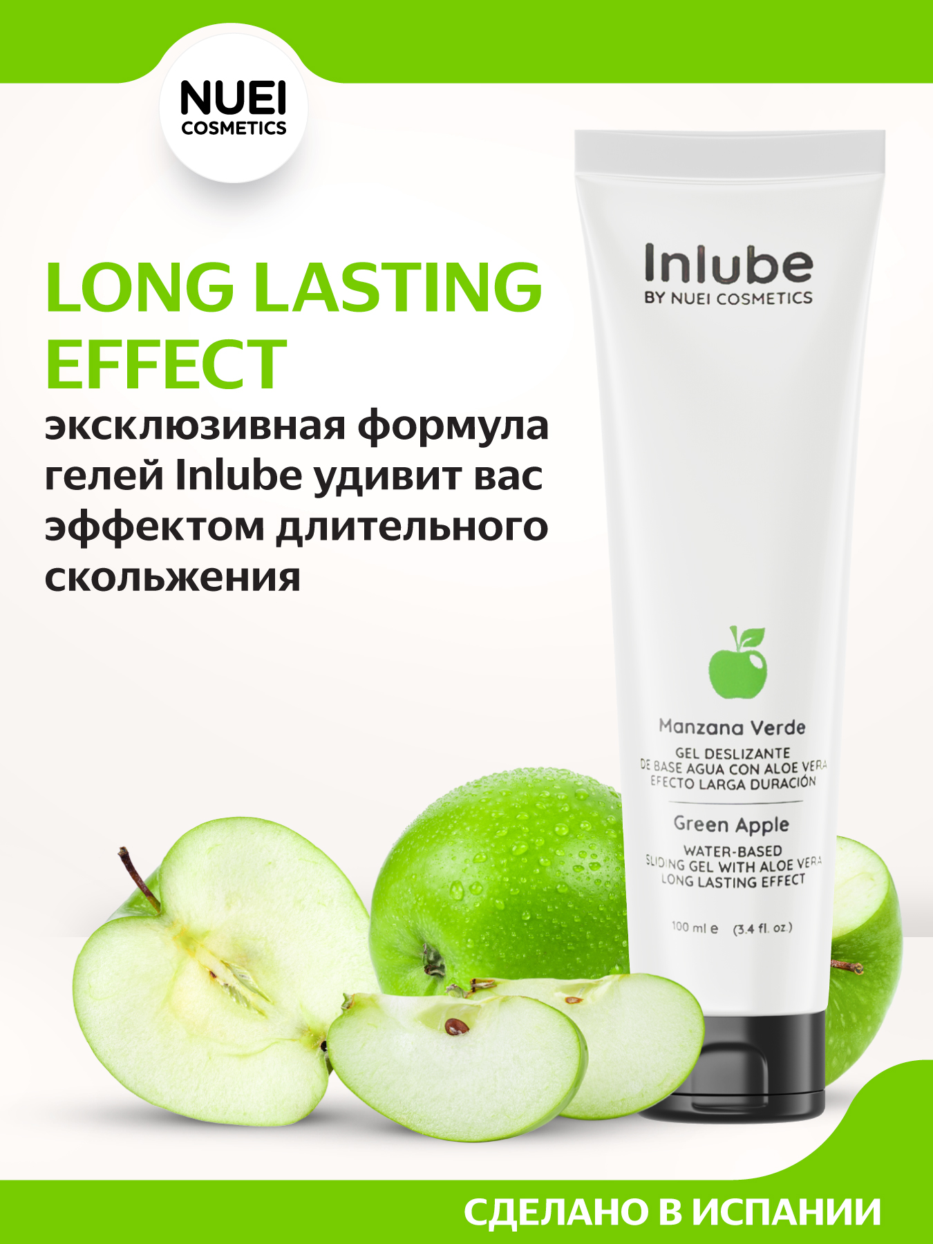Nuei Inlube - водный лубрикант с алоэ вера и ароматом зелёного яблока, 100 мл