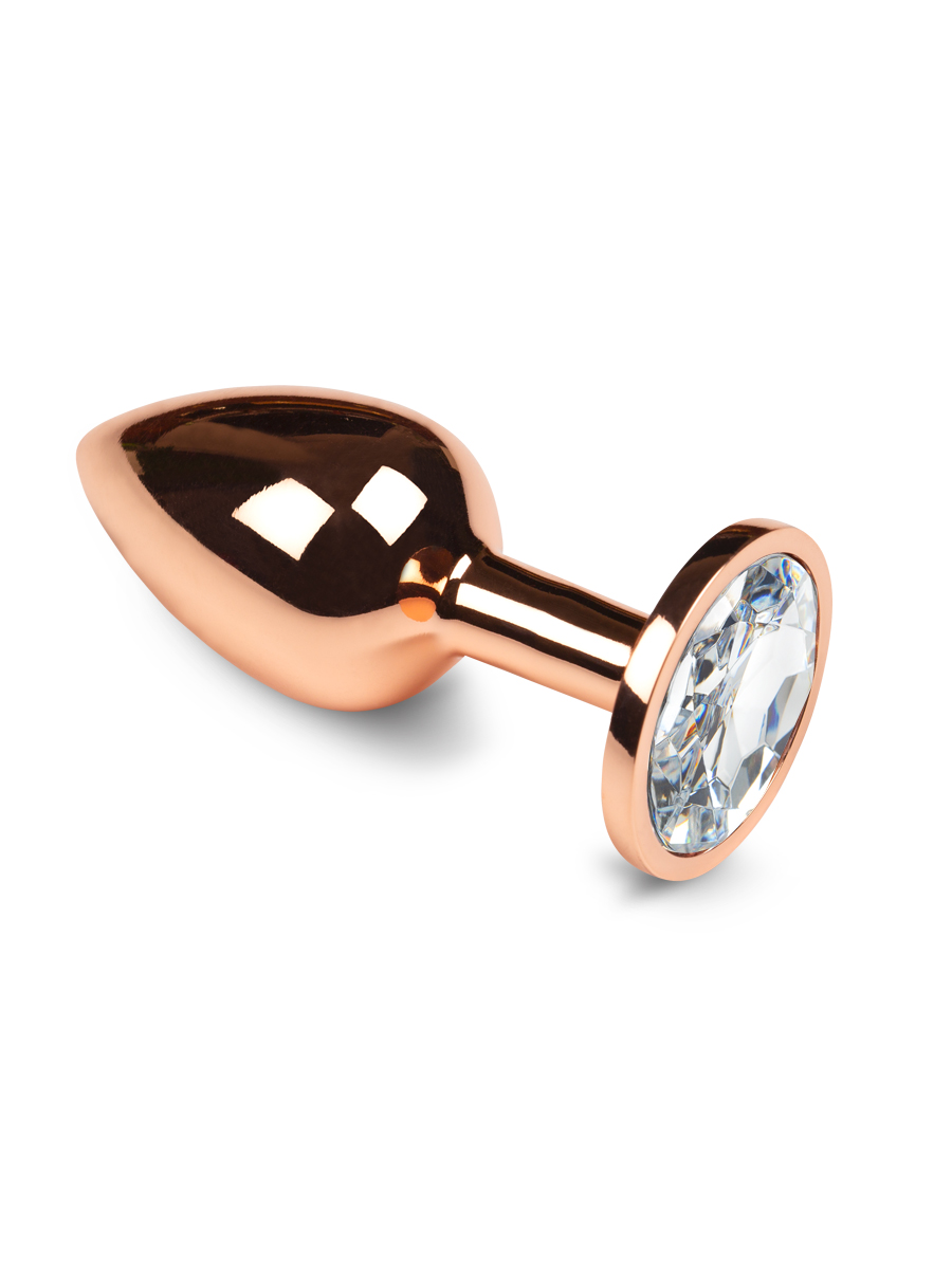 Пикантные штучки - маленькая золотая анальная пробка с кристаллом, 6х2.5 см (белый)