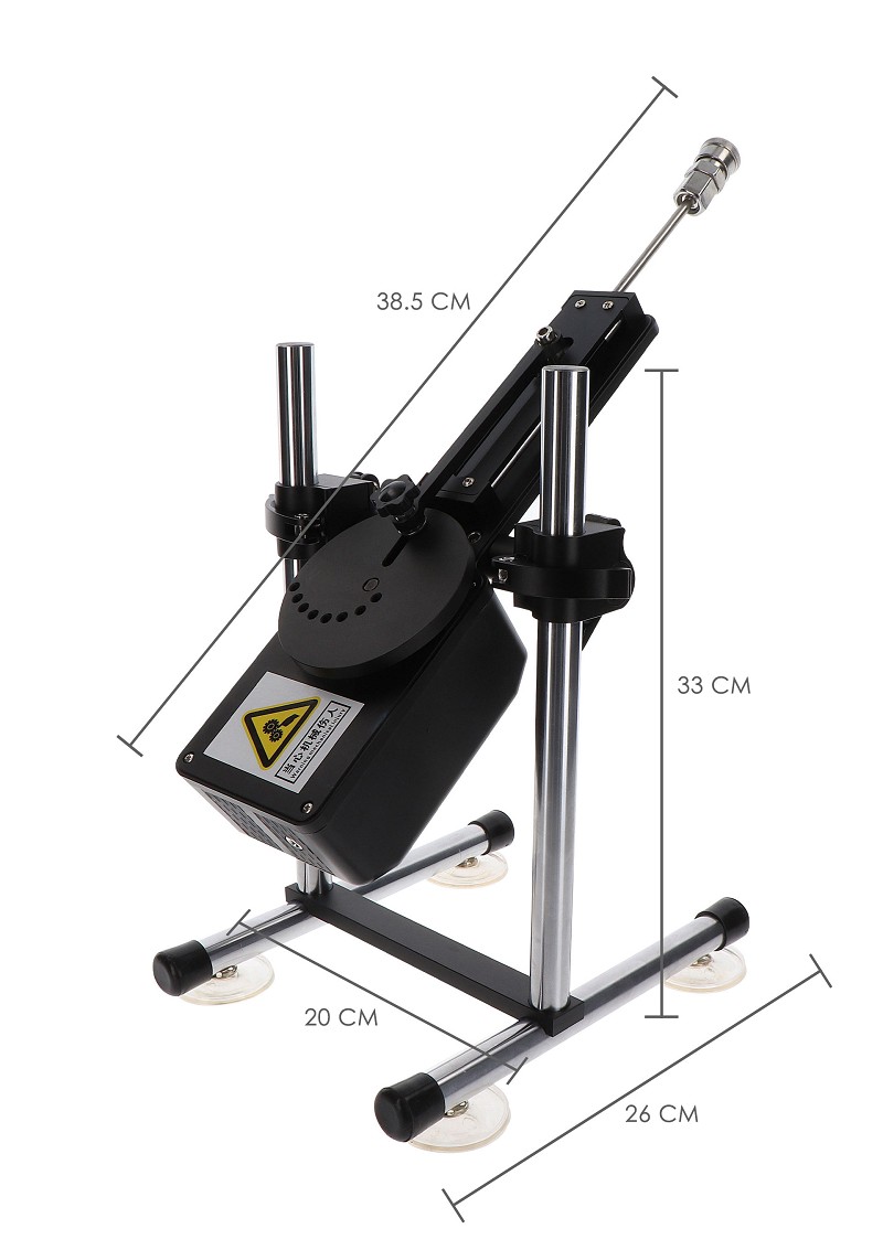 Эта машина производит 285 ударов в минуту. Присоски гарантируют, что секс-машина не будет двигаться во время действия. В комплект машины входят пульт дистанционного управления, фаллоимитатор длиной 17 см и два адаптера.