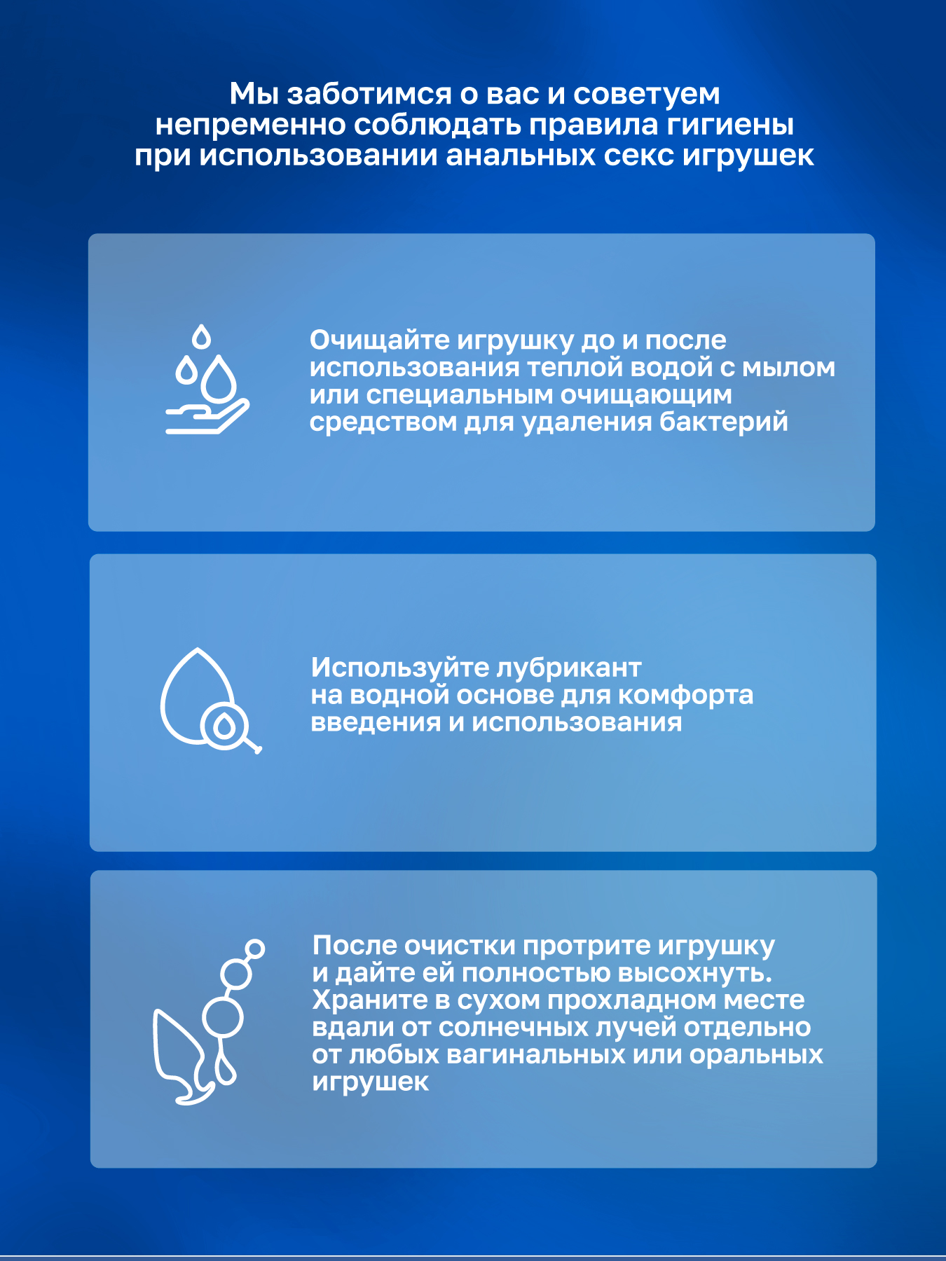 Нагрейте пробку в микроволновой печи и возьмите немного смазки на водной основе. Нанеся смазку на игрушку и анус, начните вставлять ее внутрь. Наслаждайтесь наполнением этой гибкой пробки и экспериментируйте, вставляя и вынимая ее, чтобы исследовать все возможности удовольствия! Когда вы закончите играть, просто промойте теплой водой с мягким мылом, затем распылите средство для чистки игрушек и вытрите насухо. Хранить отдельно от любых вагинальных или оральных игрушек.