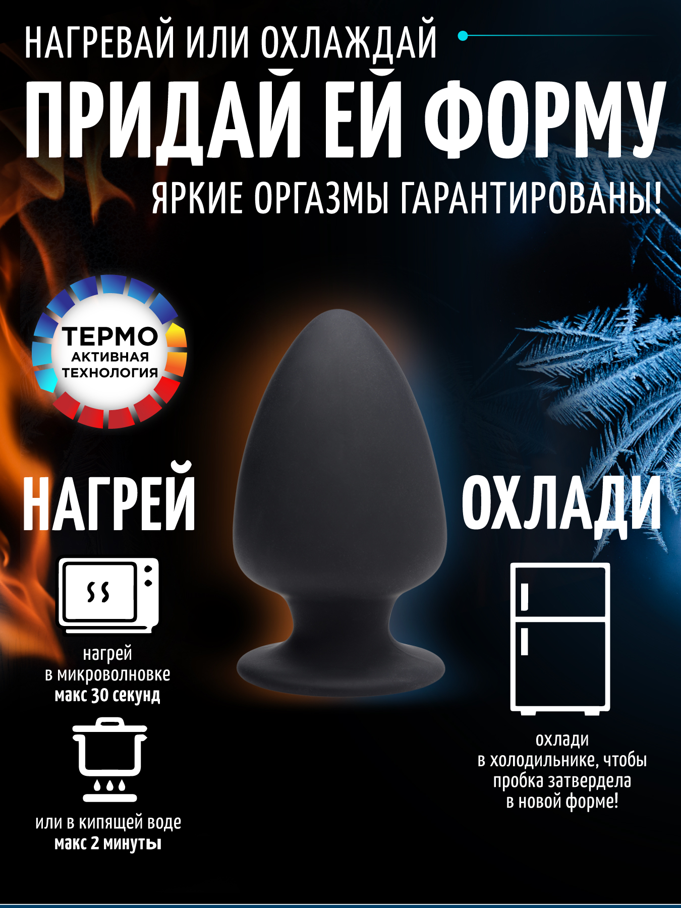 Пробка изготовлена с использованием термореактивной технологии, её можно охладить в холодильнике до тех пор, сделав холодной и твердой, или пробку можно нагреть в микроволновой печи или кипящей воде, чтобы сделать её теплой и податливой.