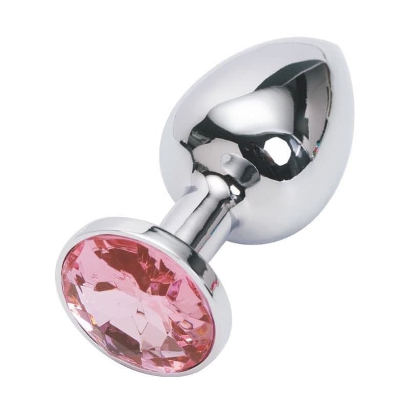 Анальная пробка с кристаллом. Маленькая, серебро 7.5 см (розовый)