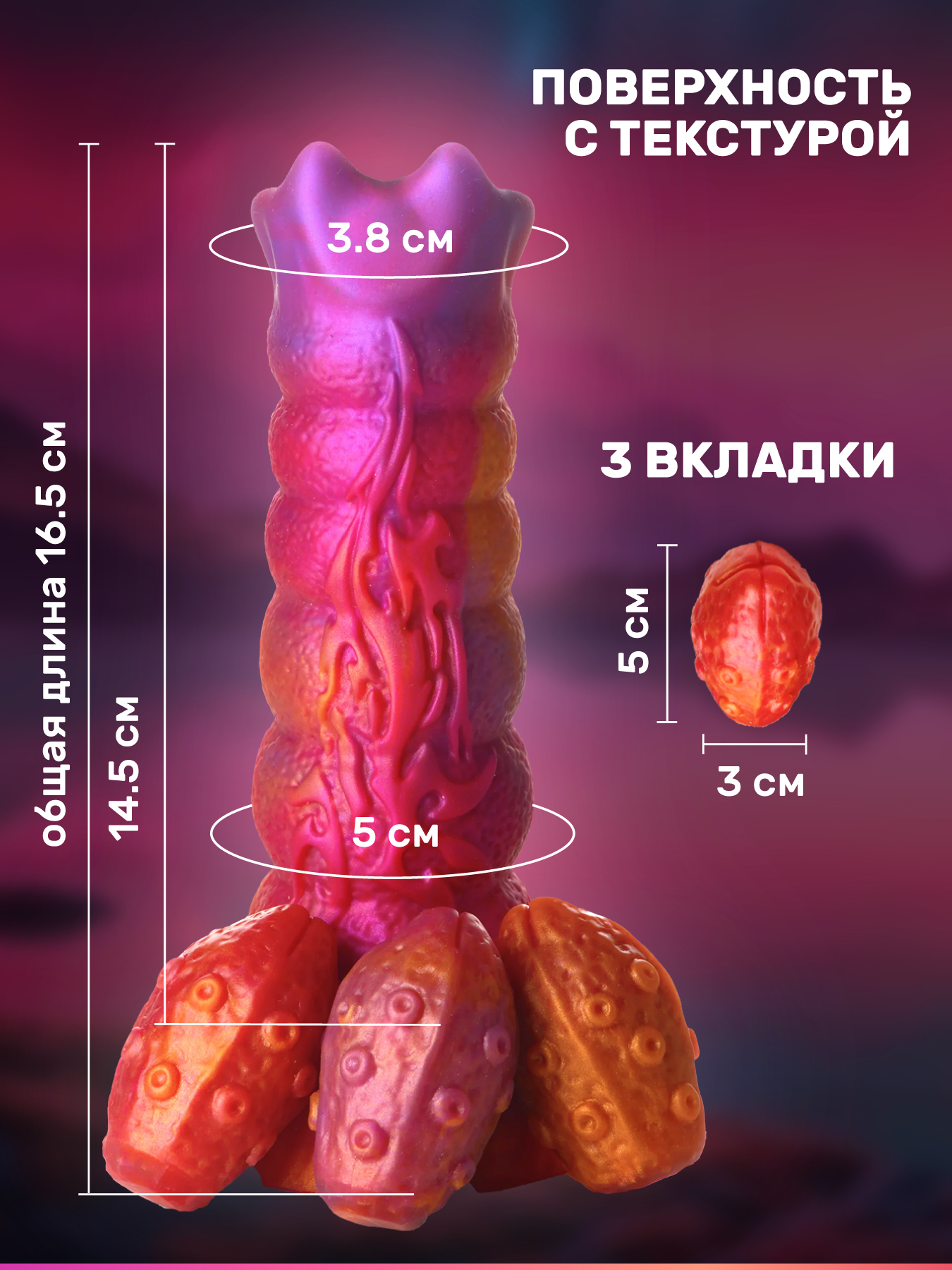 Толстый стержень фаллоимитатора имеет сегментированные ребра и открытую головку. Длинный, мягкий и гибкий стержень имеет полый центр, который достаточно широк, чтобы мягкие силиконовые вкладки могли проскользнуть внутрь. Широкое фланцевое основание делает его совместимым с трусиками для страпона. Изготовлен из высококачественного силикона без фталатов, имеет прочную сердцевину и мягкую шелковистую поверхность.