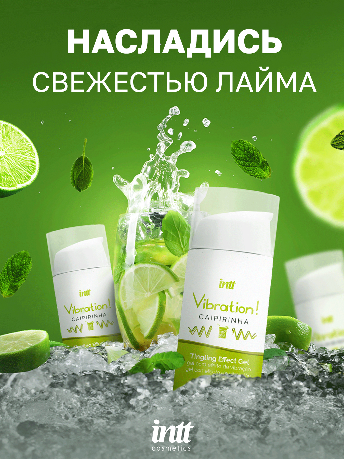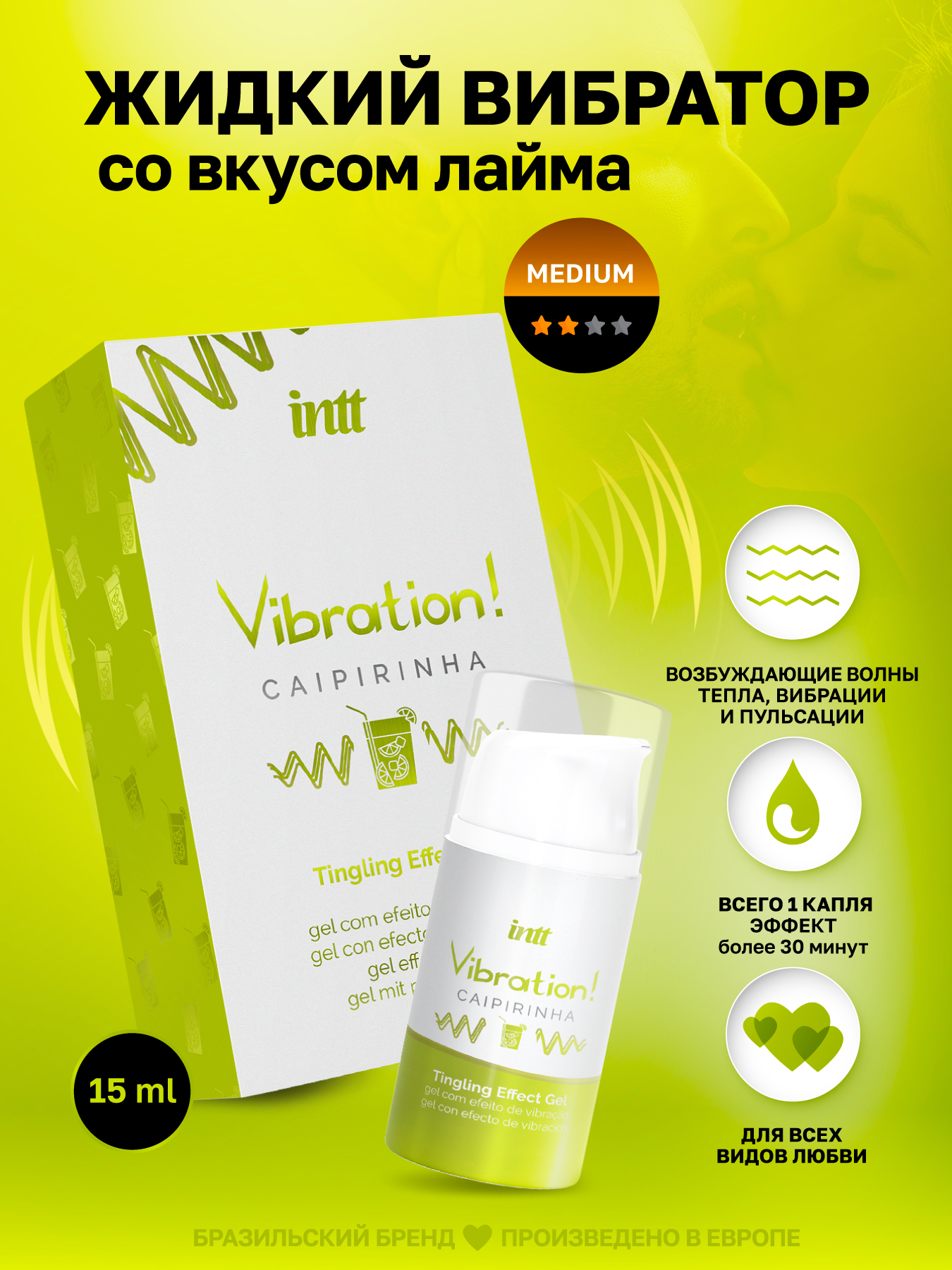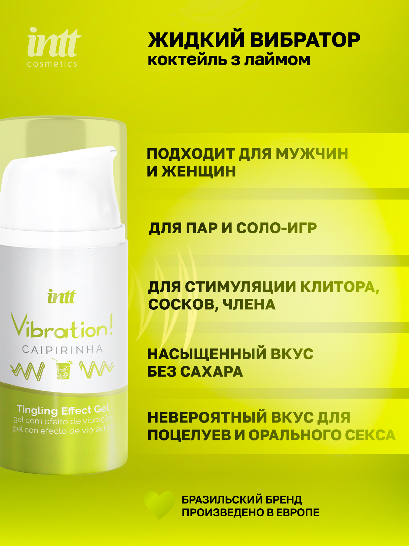 Intt Caipirinha Vibration - Жидкий интимный гель с эффектом вибрации Лайм, 15 мл