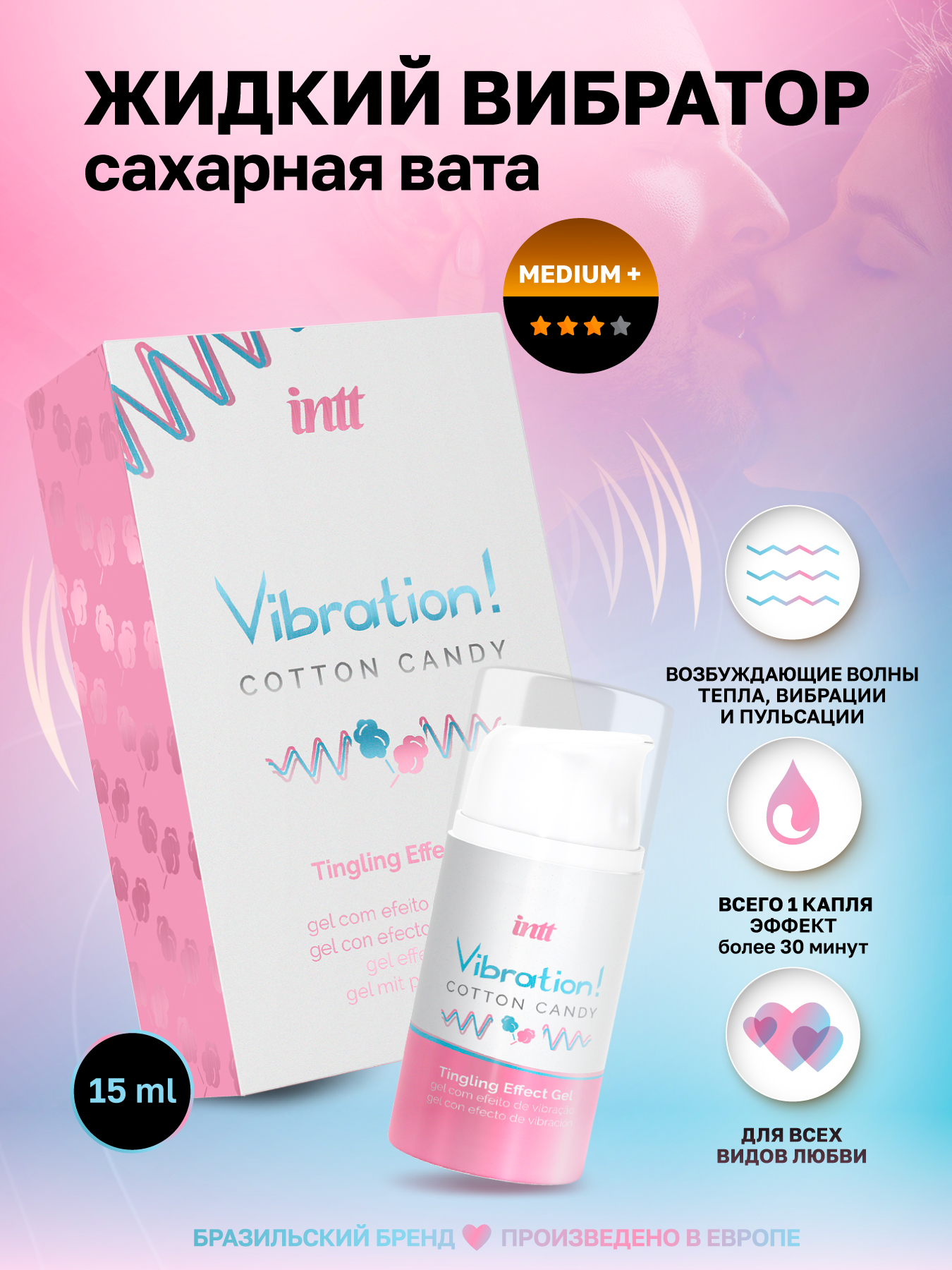 Intt vibration Cotton candy - Жидкий интимный гель с эффектом вибрации Сахарная вата, 15 мл