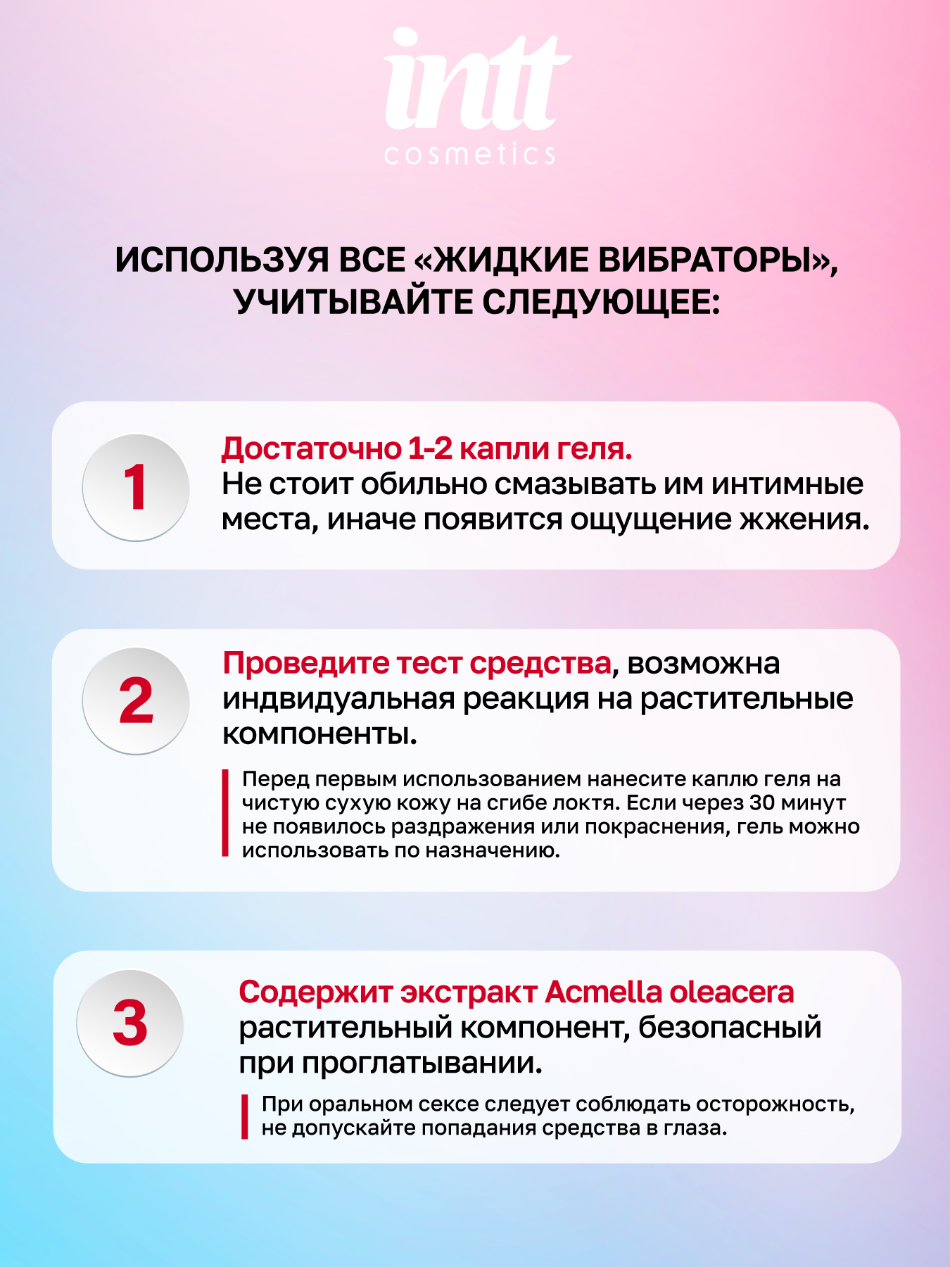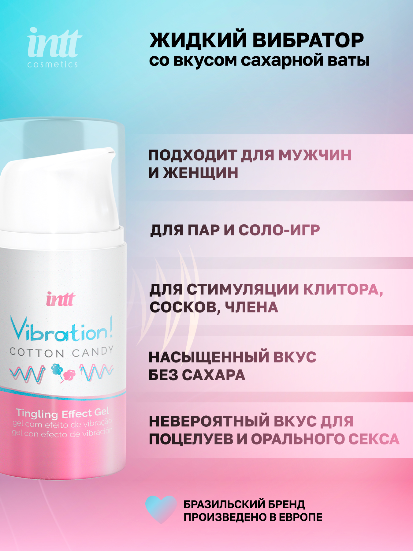 Приобрести жидкий вибратор Intt Vibration Cotton Candy просто необходимо, потому что таких ощущений вы не испытывали никогда. Настоящие вибрации, согревание, плюс сладкий вкус сахарной ваты: все, что нужно для удовольствия, волнующих поцелуев и незабываемых оральных ласк и для него, и для нее.